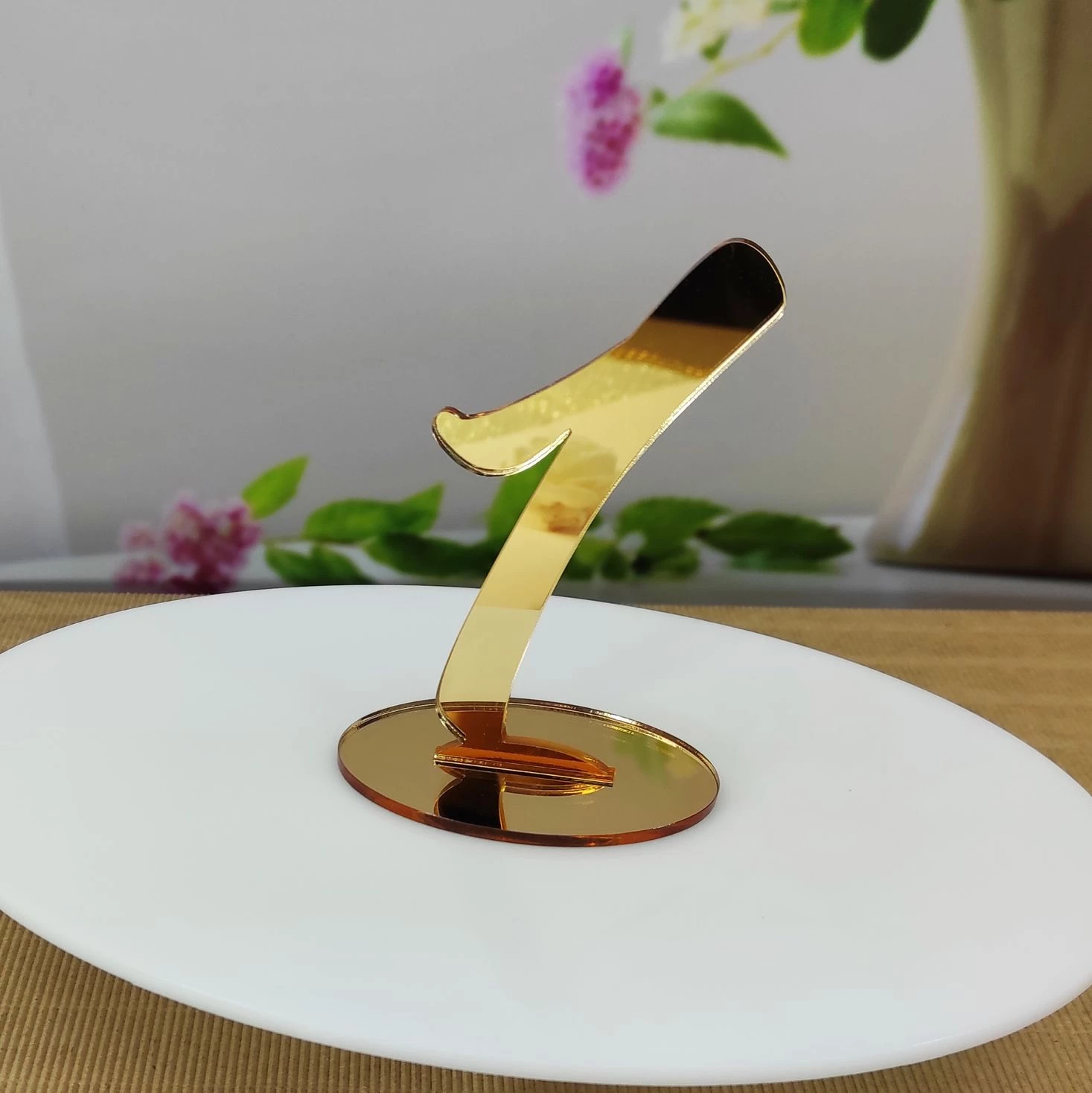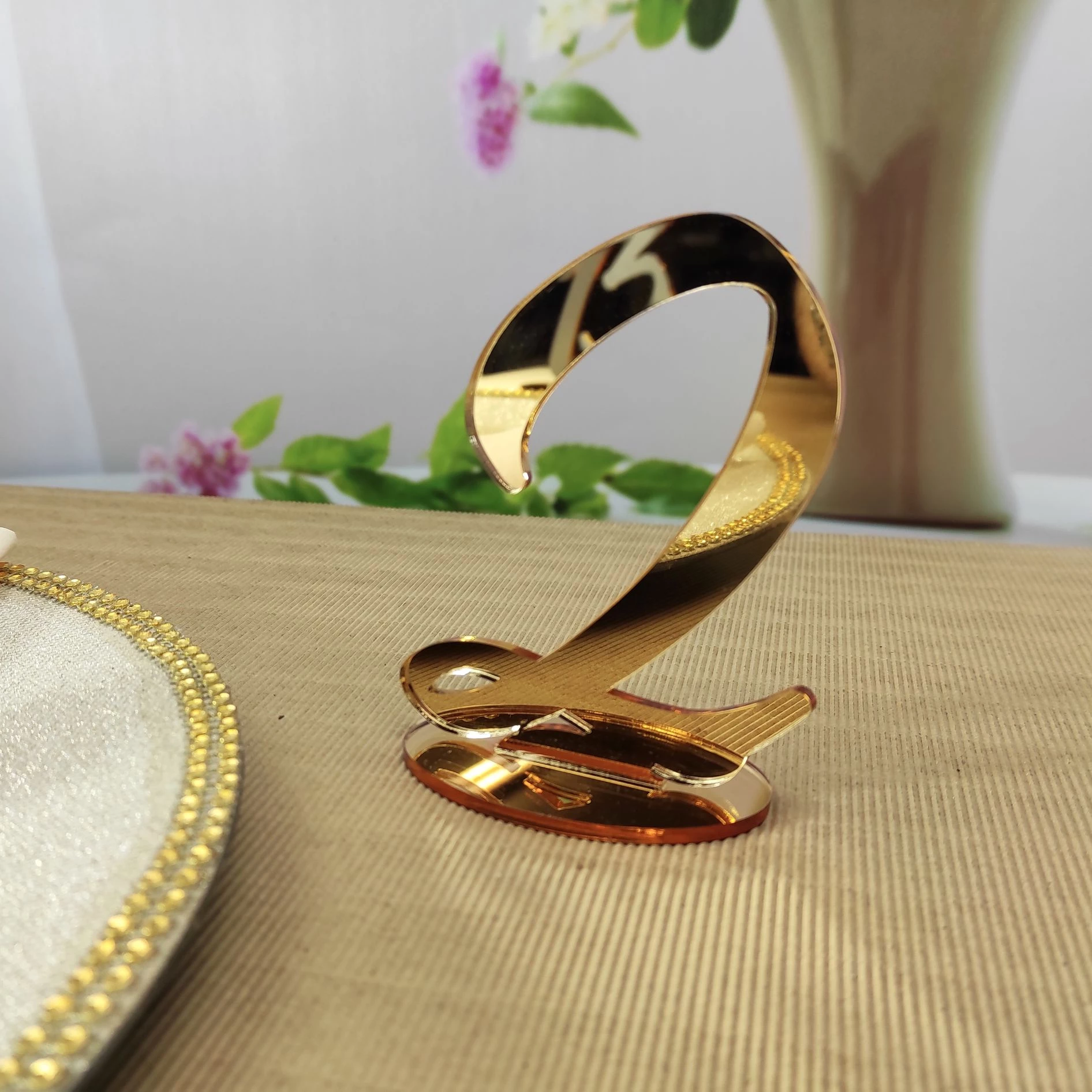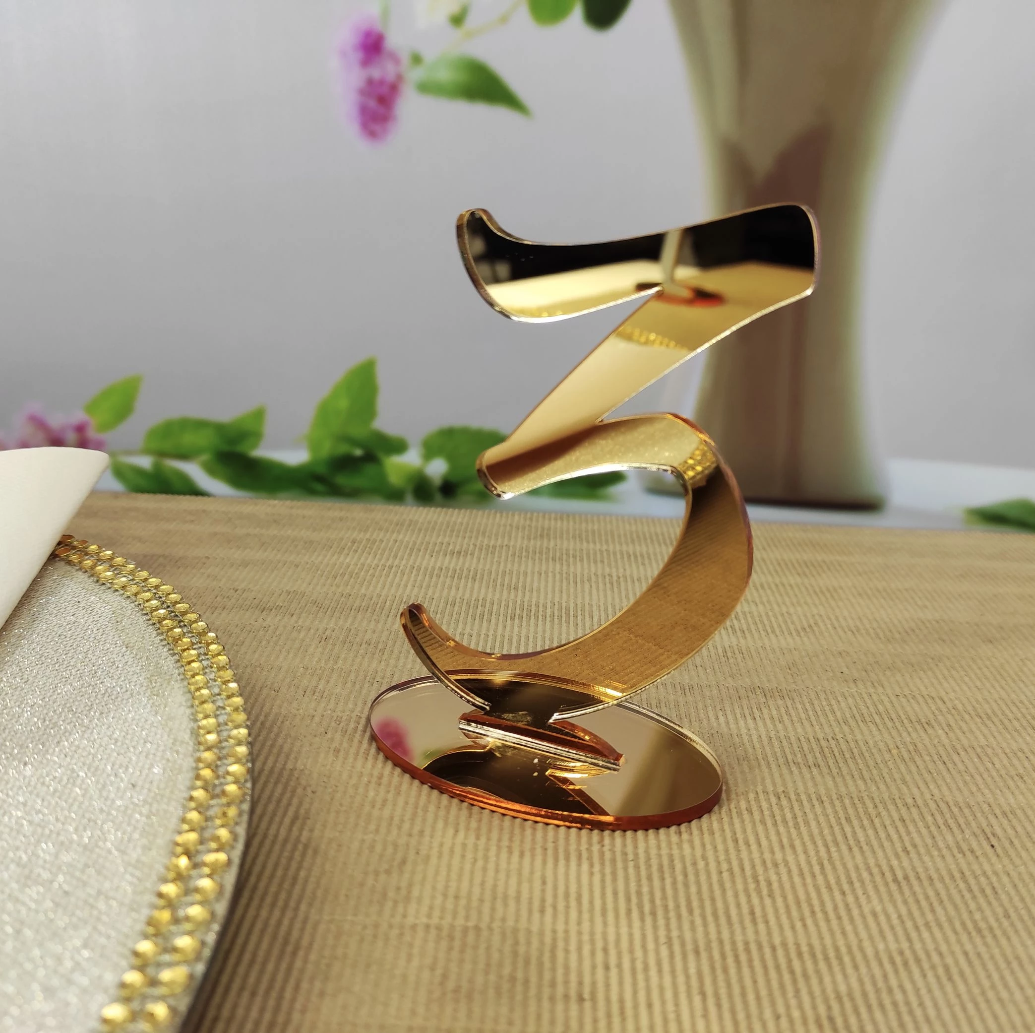 Označte svoje svadobné stoly pomocou našich čísel vyrezaných zo zlatého zrkadlového akrylu s využitím technológie laserového výrezu.