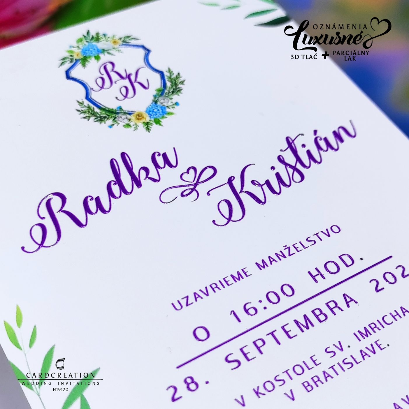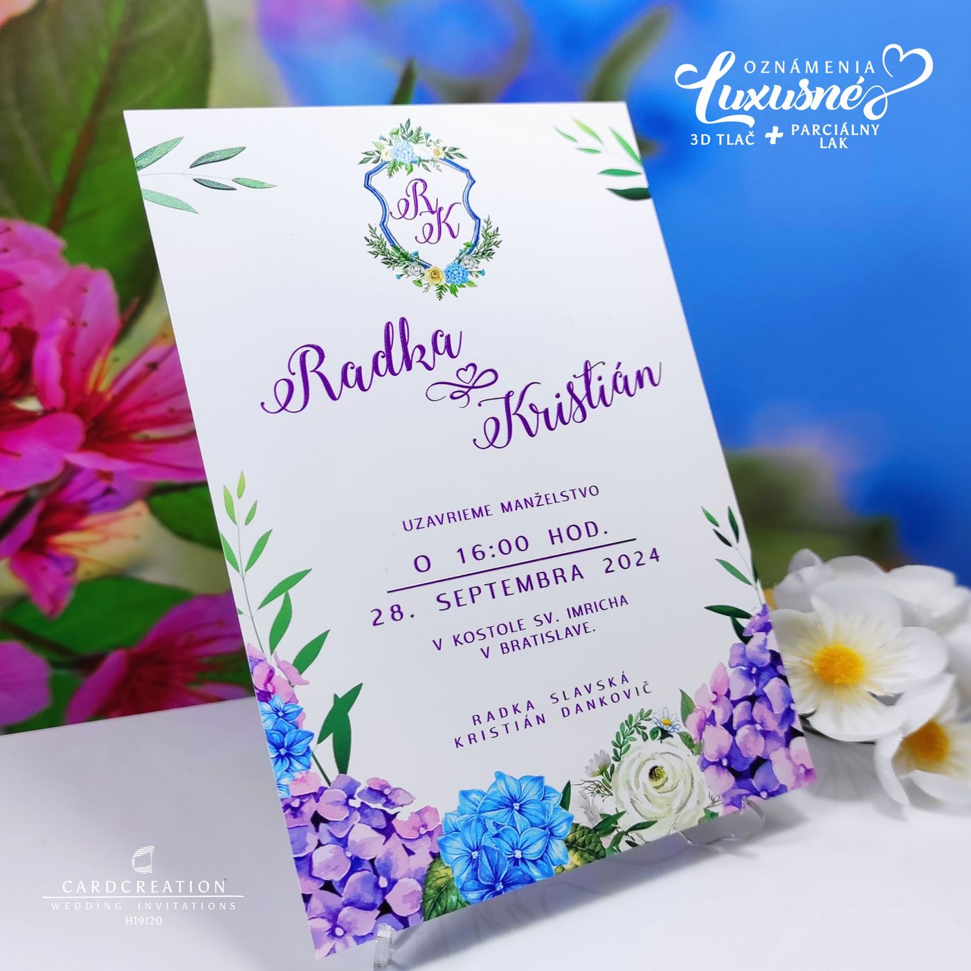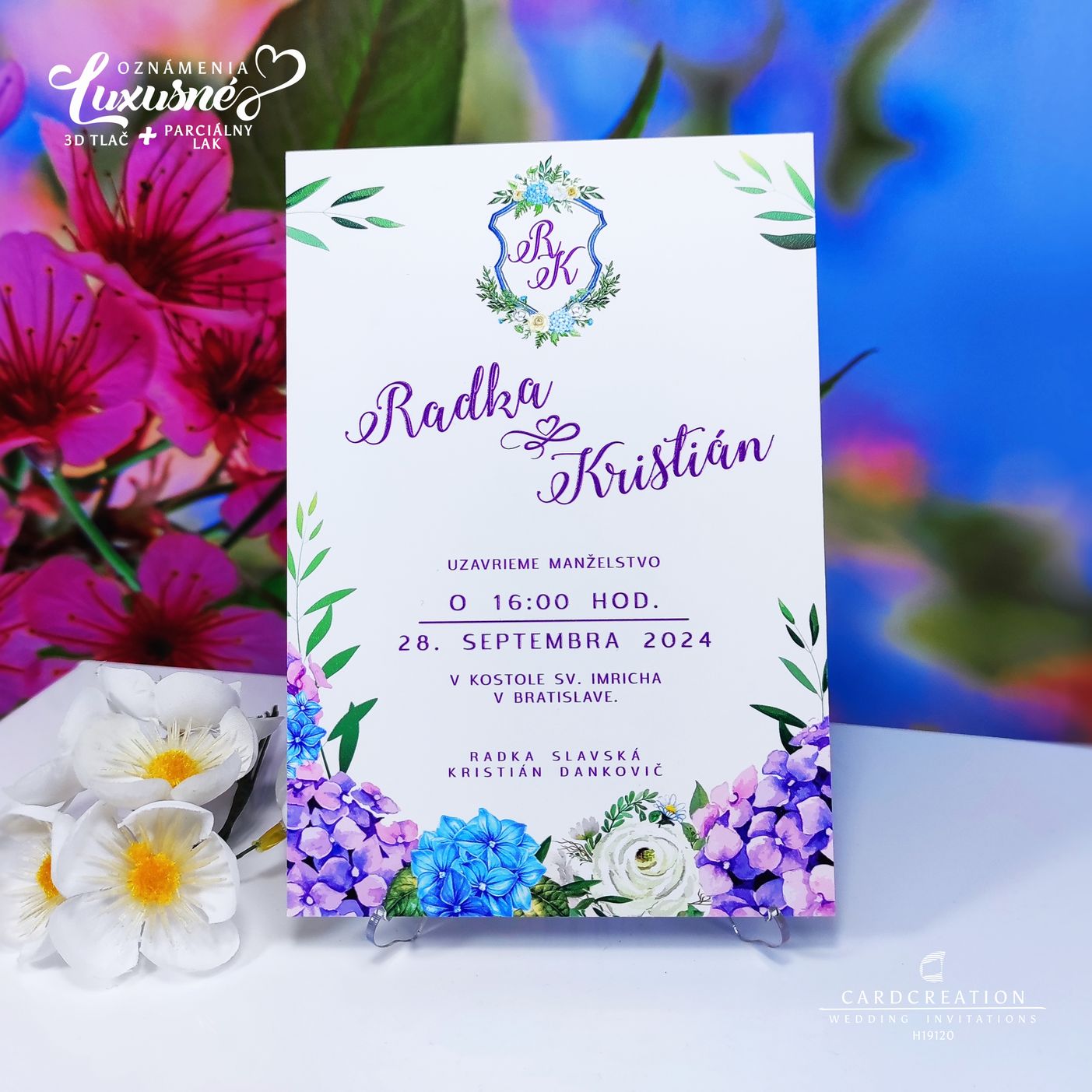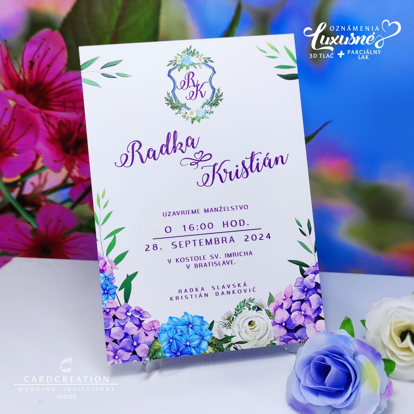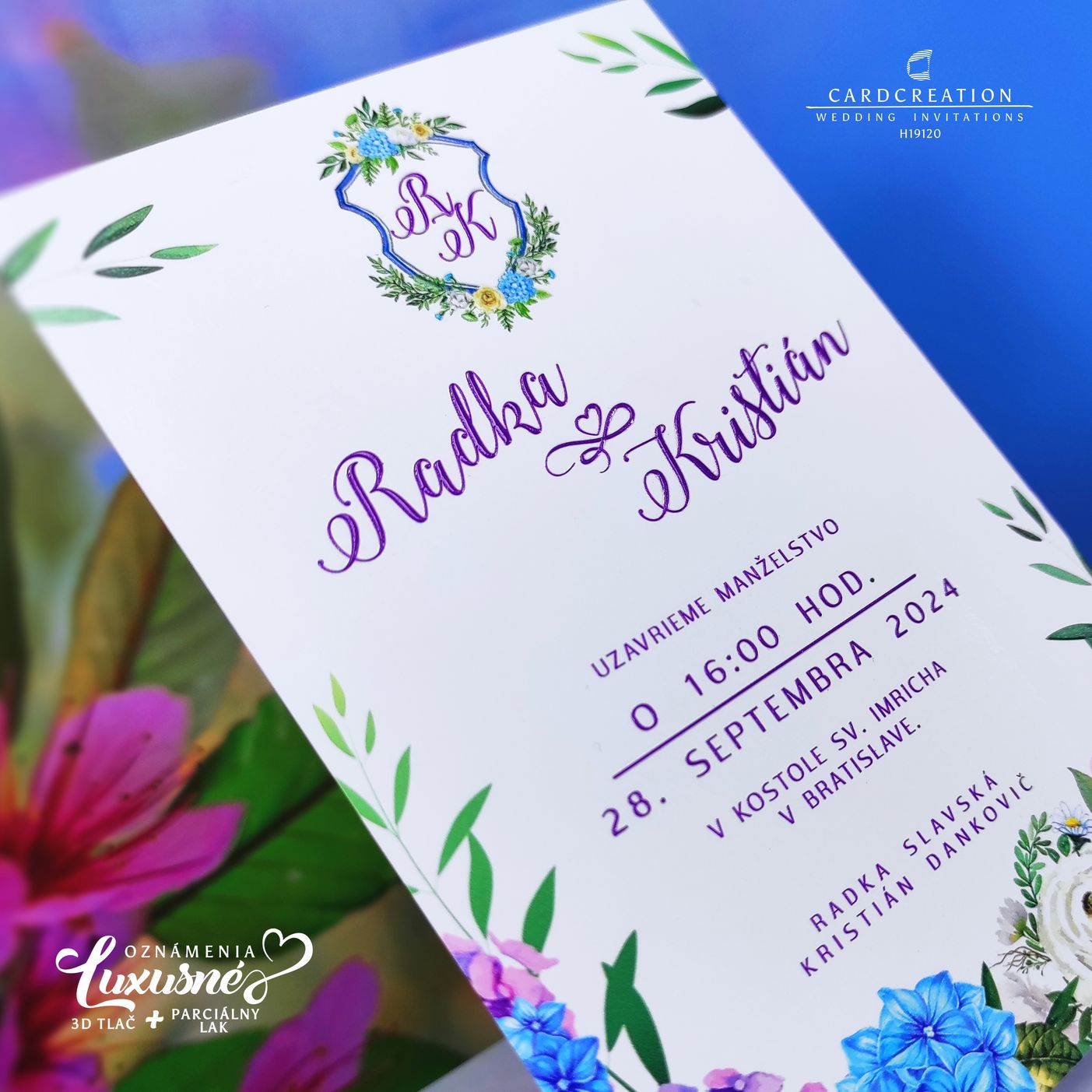 Nové svadobné svadobné oznámenie H19120 je vytlačené na bielom matnom papieri. Pre našich zákazníkov prinášame dokonalú tlač najvyššej kvality. Krásne farby CMYKLCLM + lak vytvárajú luxusné oznámenia , ktoré môžu byť Vaše. Zrealizujeme aj Vaše grafické nápady a predstavy. Oznámenia vieme vytlačiť na rôzne podklady ( sklo, plexi, drevo, kov a kartón na akékoľvek gramáže atď… Oznámenie H19120 má rozmer 100×150 mm. K oznámeniu dodávame všetky ostatné tlačoviny na Vašu svadbu ( menovky, menu, zasadací poriadok, etikety, visačky , knihy hostí , atď …… )