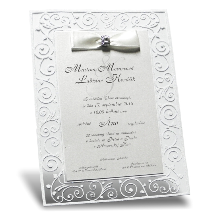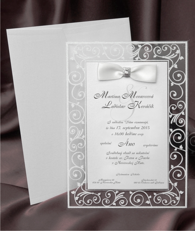 k spodnej časti striebornou ozdobnou brošňou s mašlou.