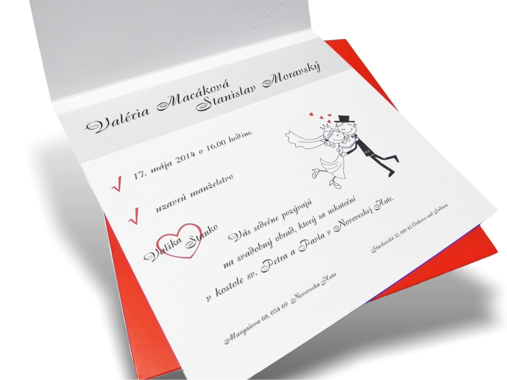Oznámenie sa skladá z červenej obálky a bielej