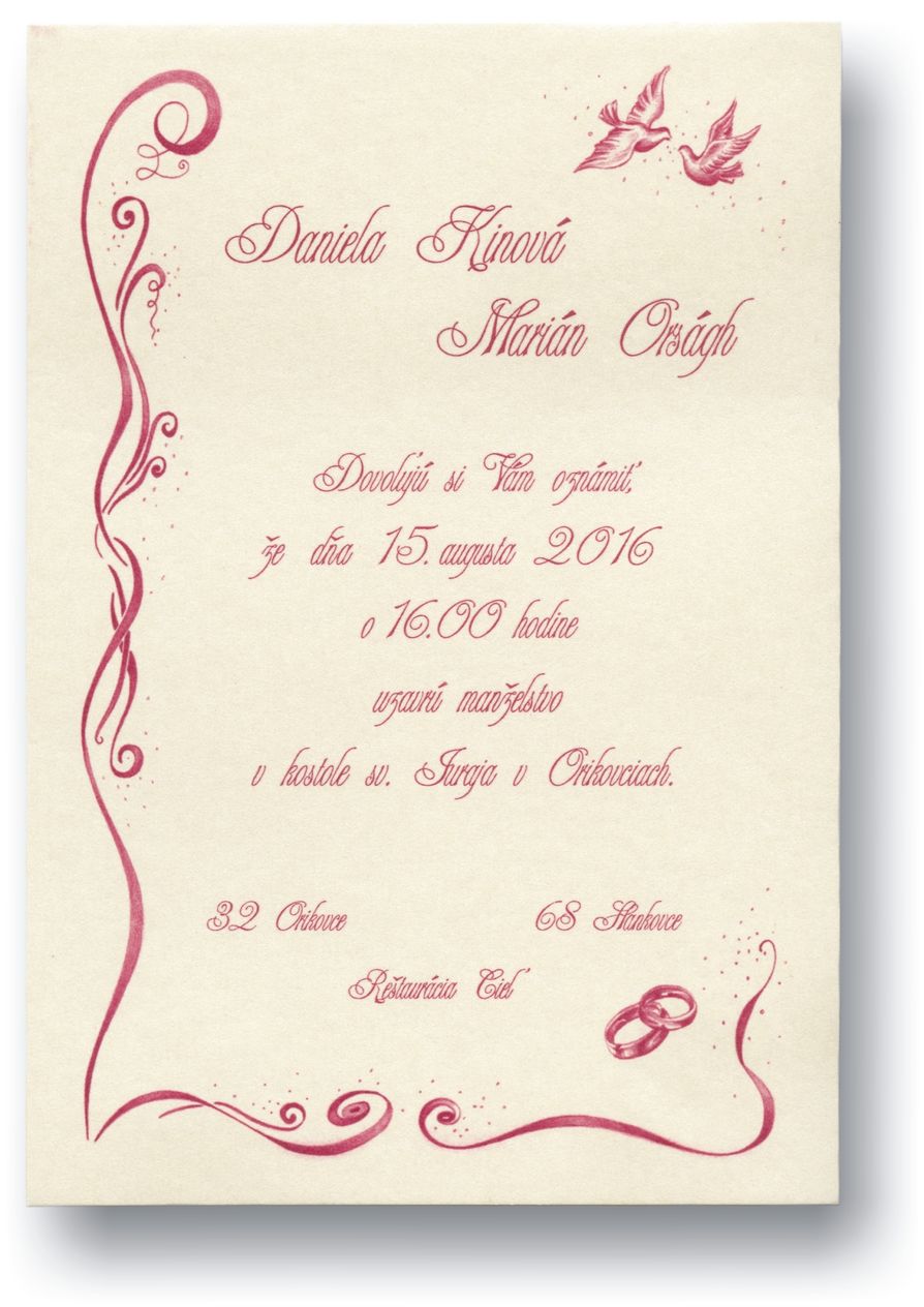 Cena svadobných oznámení je závislá od množstva.