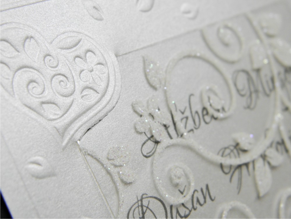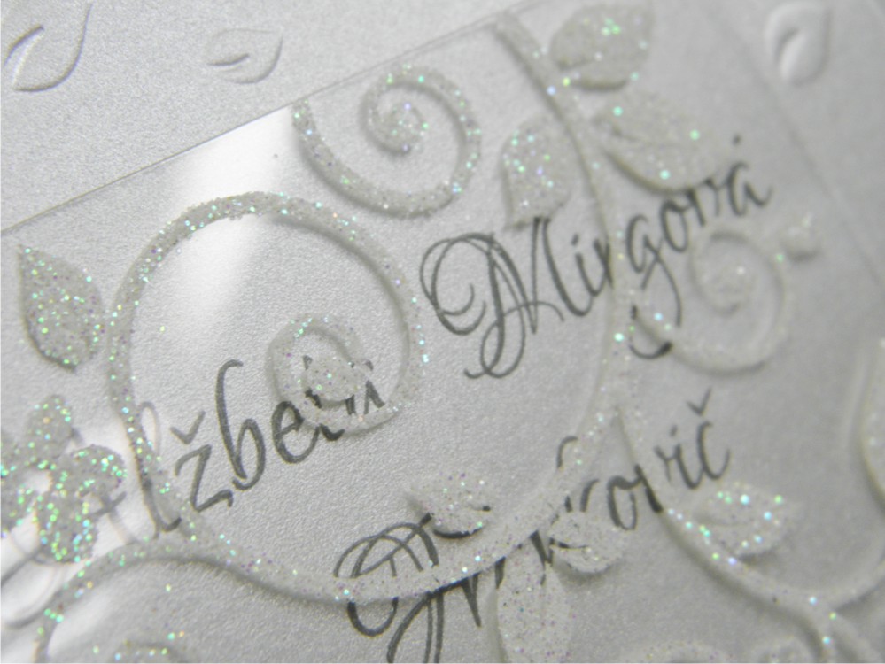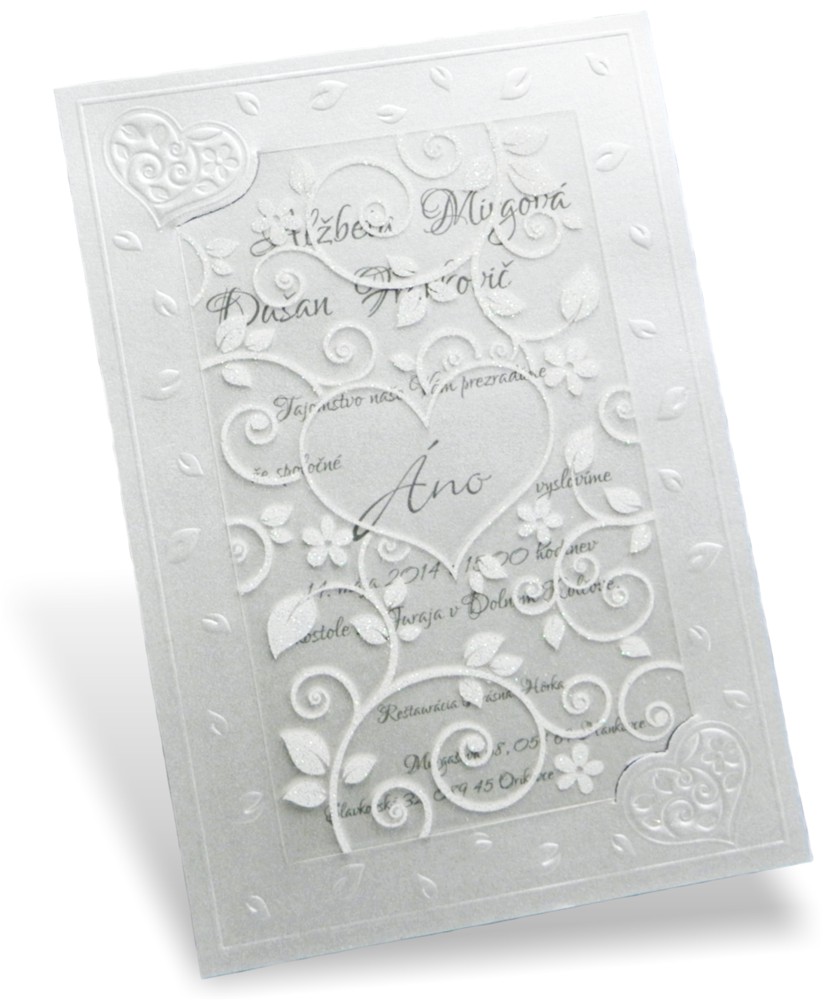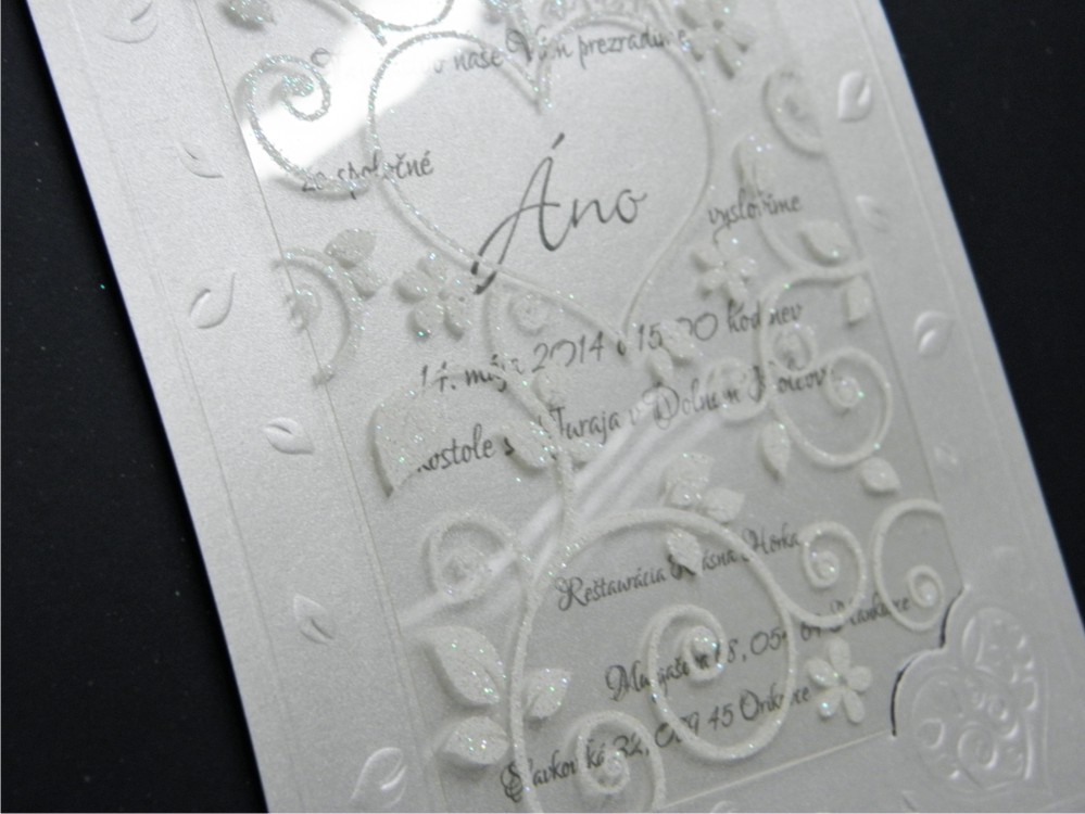 -oznámenie s tvarovým výsekom s 3D ražbou